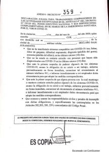 De esta manera, los trabajadores de los rubros exceptuados del aislamiento obligatorio deberán firmar una Declaración Jurada donde aseguran no haber tenido síntomas de COVID-19 o no haber estado en contacto con un caso positivo en los últimos 14 días. Esta declaración tendrá una validez de 14 días.