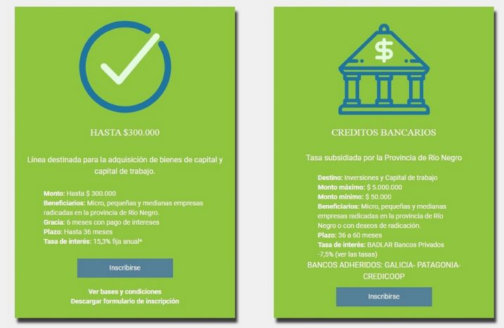 El Ministerio de Economía de la Provincia de Rio Negro, a través de la Agencia CREAR, habilitó nuevas líneas de crédito, para beneficiarios Pymes y destinadas a la adquisición de bienes de capital y capital de trabajo.