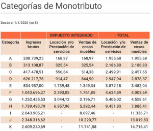 La AFIP dio a conocer cómo quedarán las nuevas categorías del Monotributo a partir de 2020. Los valores de los ingresos brutos máximos de cada una subirán 51,1%. Este porcentaje se ajusta cada año según el incremento anual para las jubilaciones. Junto con el monto tope de ventas para cada categoría, también sube el valor de las cuotas que hay que pagar. A continuación se detalla como quedaron las nuevas categorías a regir desde el 01/01/2020: