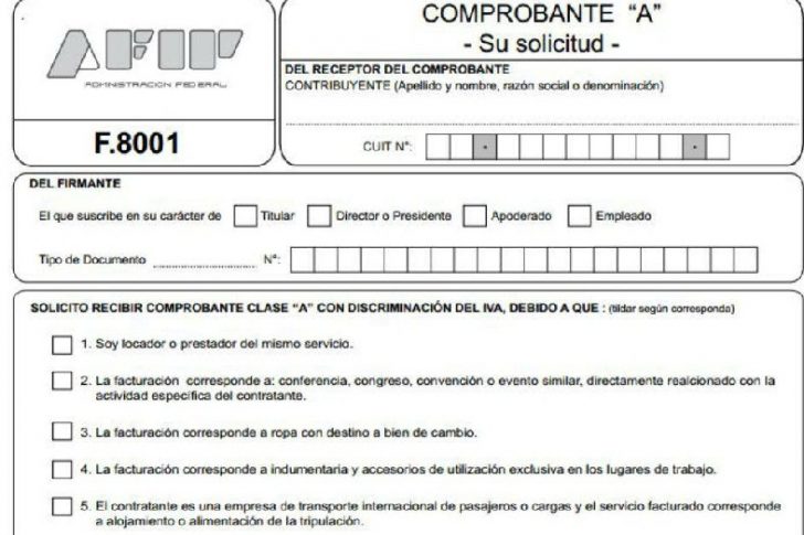 La Administración Federal de Ingresos Públicos (AFIP) derogó la obligación de requerir a los receptores de facturas “A” el formulario…